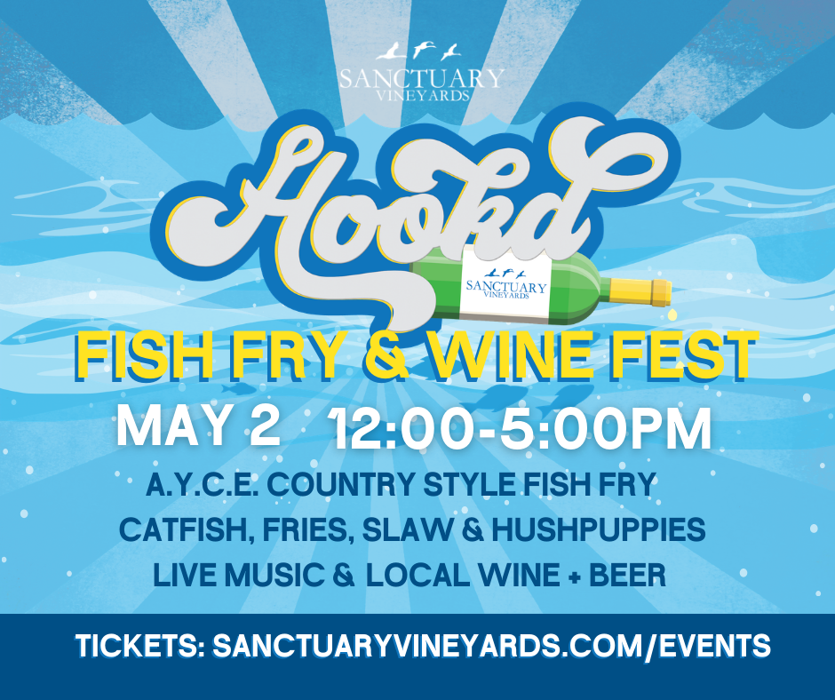 Save the date: Hook'd Fish Fry & Wine Fest — May 2, 12–5 PM at Sanctuary Vineyards